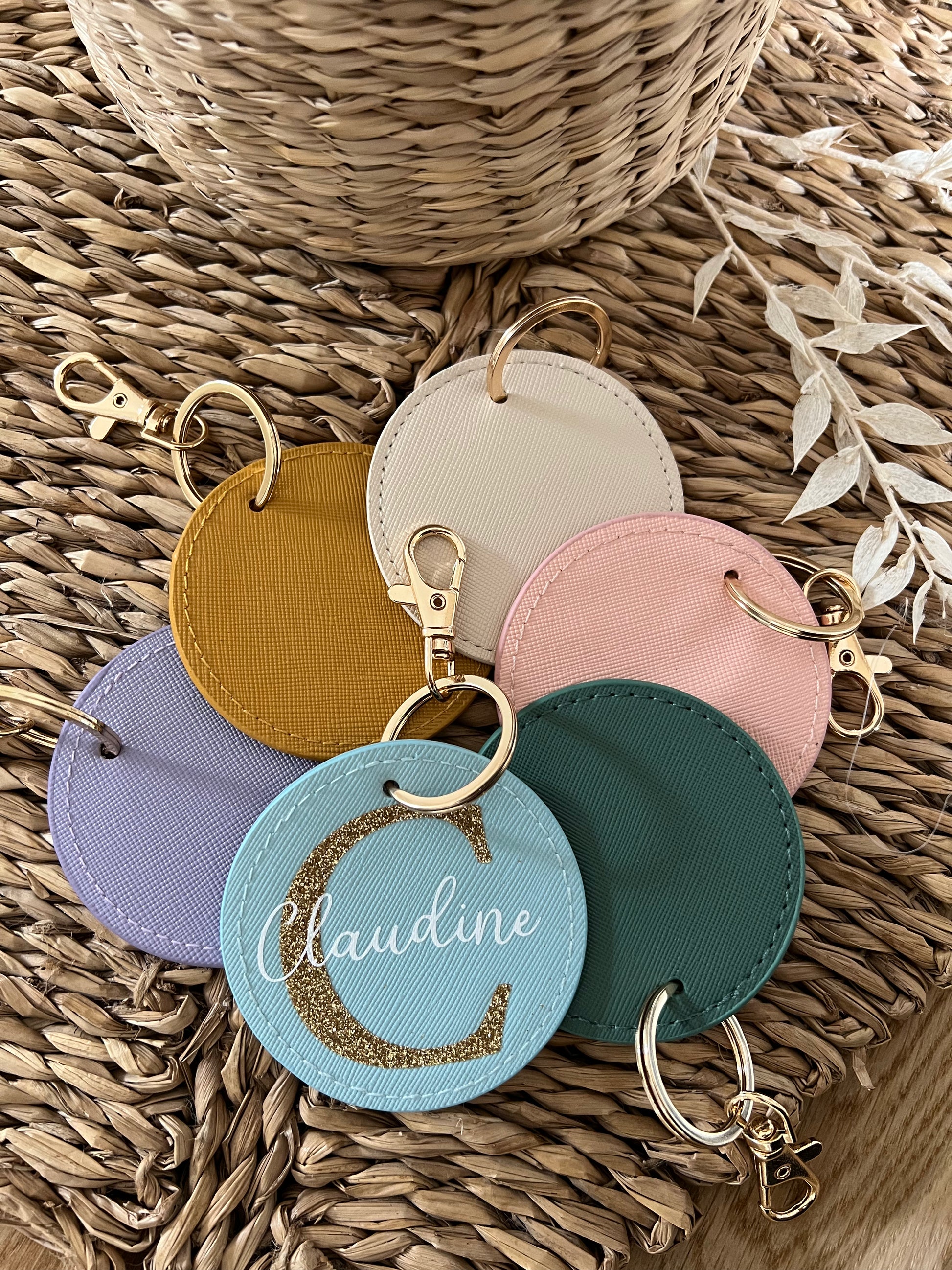 Porte-clés rond simili cuir personnalisé